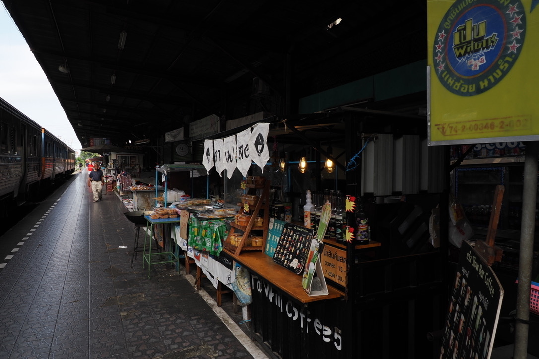 コーラを50バーツで購入し、列車通過の瞬間を撮影しながら、市場の様子をゆっくり観察した。